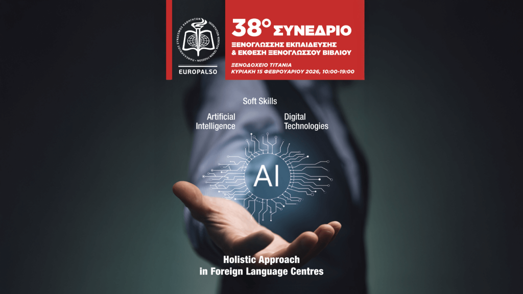 Ο Πανελλήνιος Σύνδεσμος Καθηγητών – Ιδιοκτητών Κέντρων Ξένων Γλωσσών (EUROPALSO) (ταυτότητα Συνδέσμου), διοργανώνει το 38ο Συνέδριο και την Έκθεση Ξενόγλωσσου Βιβλίου & Εποπτικών Μέσων Διδασκαλίας, την Κυριακή 15 Φεβρουαρίου 2026, στο Titania Hotel Athens (Πανεπιστημίου 52).